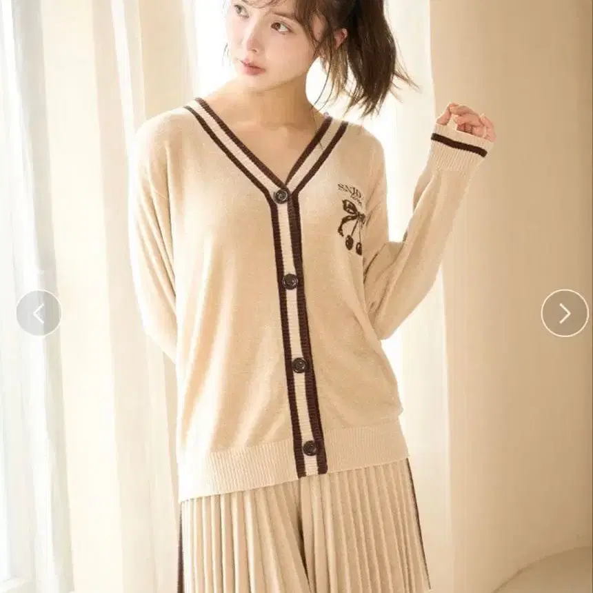 라인이 들어간 스쿨 라이크한 니트를 사용한, 가을 분위기의 시리즈입니다.