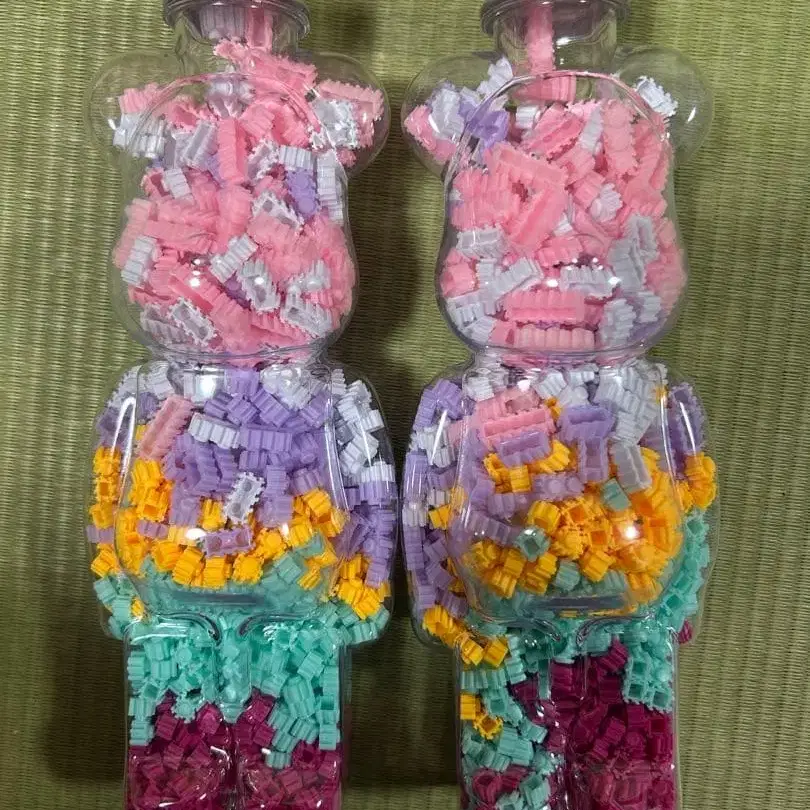 해당 상품은 게임센터에서 획득한 미니 블록입니다. 두 개 세트입니다. 곰 모양의 케이스에 담겨 있습니다.
