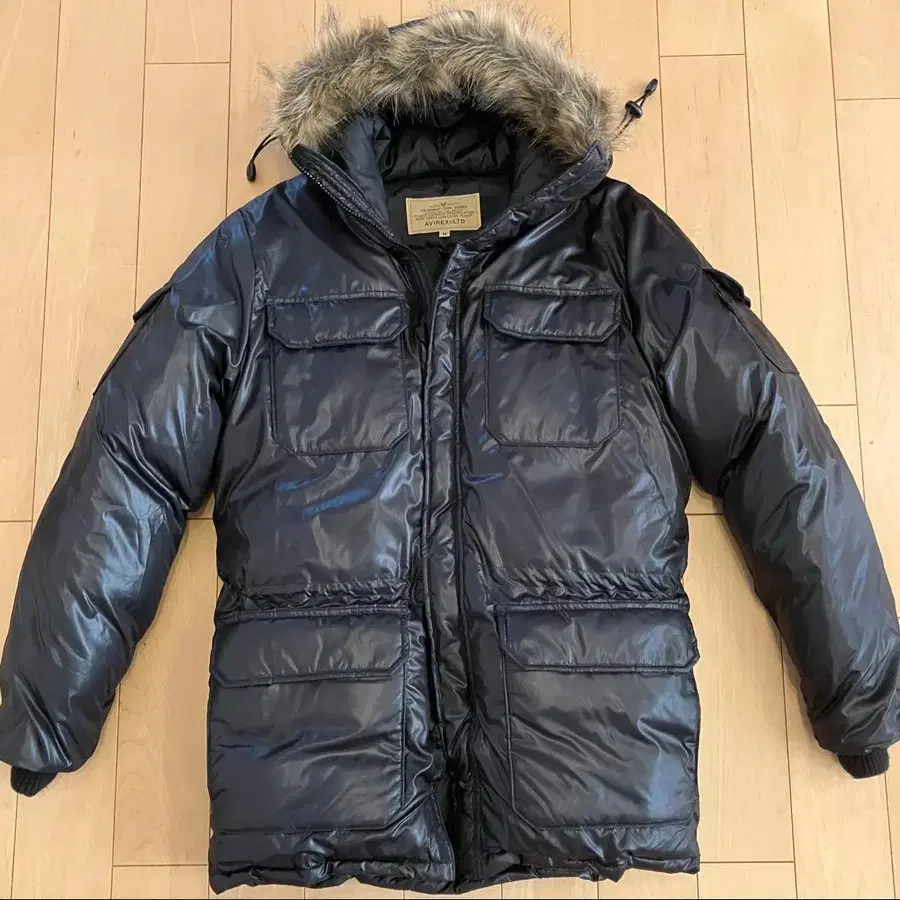 퍼가 달린 후드와 밀리터리 디자인의 AVIREX 다운 자켓. - 브랜드: AVIREX - 사이즈: M - 색상: 블랙 - 특징: 퍼가 달린 후드 - 포켓: 앞면에 4개의 포켓 - 디자인: 밀리터리 스타일 방문해 주셔서 감사합니다. 사이즈 - M