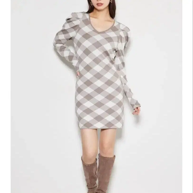 화이트와 그레이 체크 무늬 니트 미니 원피스, 퍼프 슬리브 디자인. 앞뒤 모두 착용 가능한 디자인입니다. 상품 가격 12100엔 - 디자인: 체크 무늬 - 색상: 화이트, 그레이 - 스타일: 미니 원피스 - 소매: 퍼프 슬리브 - 소재: 니트 - 브랜드명: rienda 방문해 주셔서 감사합니다.
