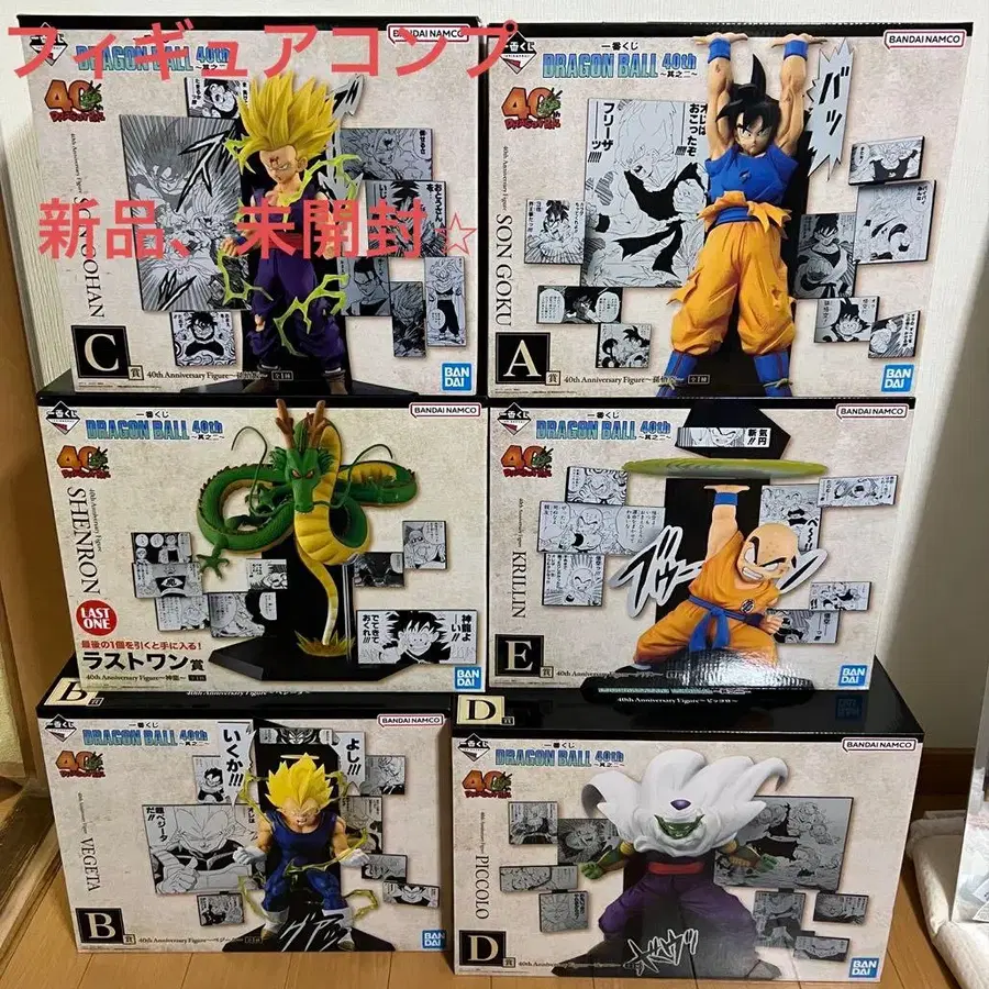 A상 40th Anniversary 피규어 ~손오공~ x 1 B상 40th Anniversary 피규어 ~베지터~ x 1 C상 40th Anniversary 피규어 ~손오반~ x 1 D상 40th Anniversary 피규어 ~피콜로~ x 1 E상 40th Anniversary 피규어 ~크리링~ x 1 라스트 원상 40th Anniversary 피규어 ~신룡~ x 1 미개봉 새상품 즉시 구매 ⭕️