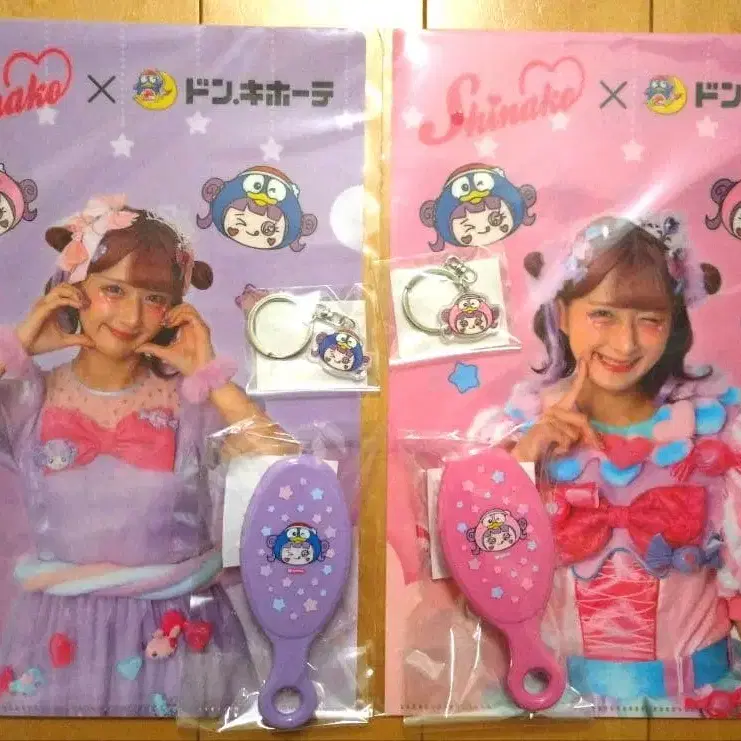 미사용 미개봉 돈키호테 시나코 클리어 파일 (퍼플) 브러쉬 (퍼플) 아크릴 키링 (퍼플) 클리어 파일 (핑크) 브러쉬 (핑크) 아크릴 키링 (핑크) 돈펜