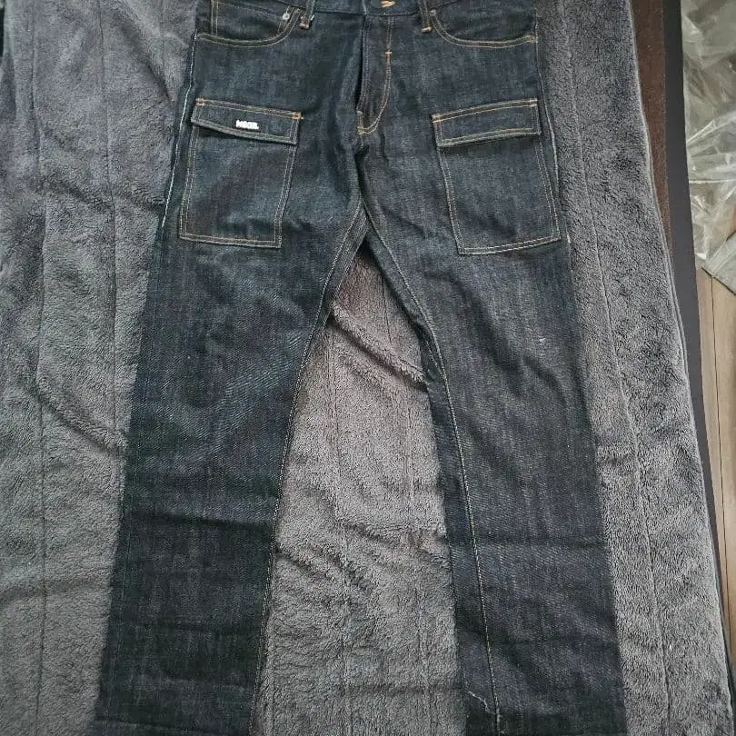 자동 번역되었어요. 원문보기다크 데님 소재의 TDON 제작, 사이드 포켓이 있는 디자인으로, 백 부분에 번개 자수가 놓인 한정판 모델입니다.