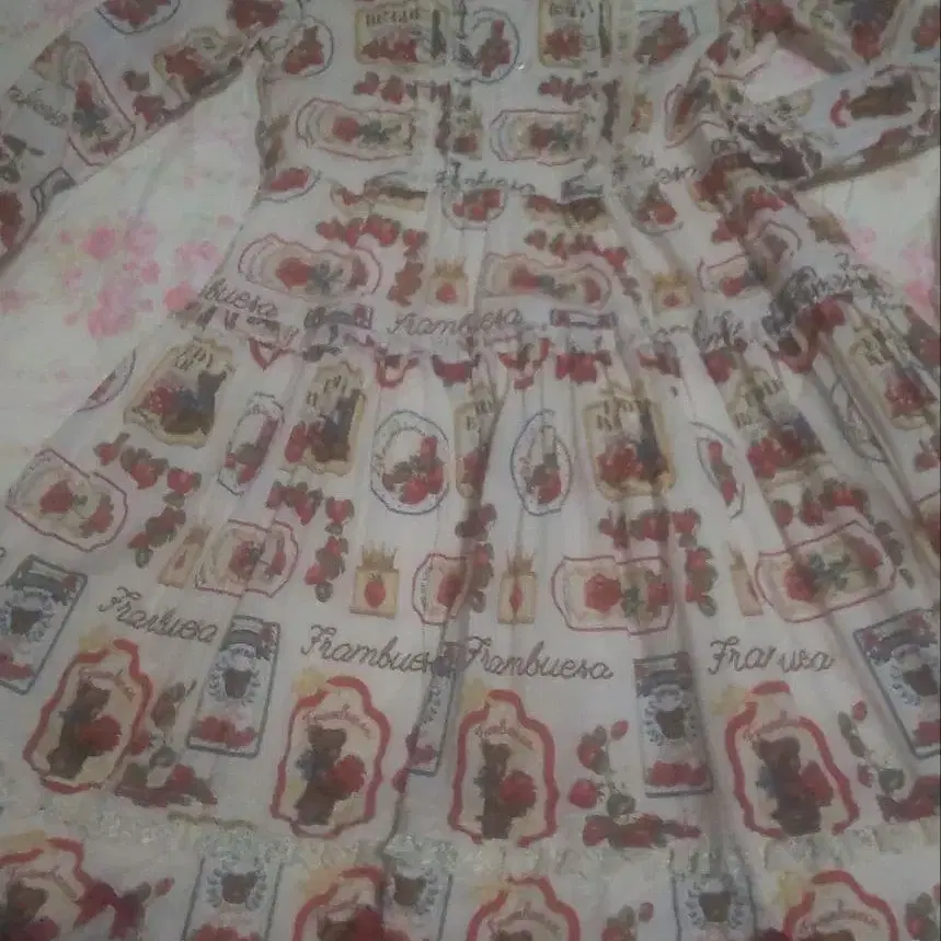 epetice에서 구매한 중국 브랜드의 곰과 딸기 패턴이 멋진 원피스입니다. 2회 착용했습니다. 면 소재로 매우 입기 편합니다. 후드에는 복슬복슬한 곰돌이 귀가 달려 있습니다. 스카프와 동일 원단의 허리 리본도 있습니다. 의류나 잡화에 주름은 있지만 얼룩이나 흠은 보이지 않습니다. 발송은 라쿠라쿠 메루카리 택배로 예정입니다.