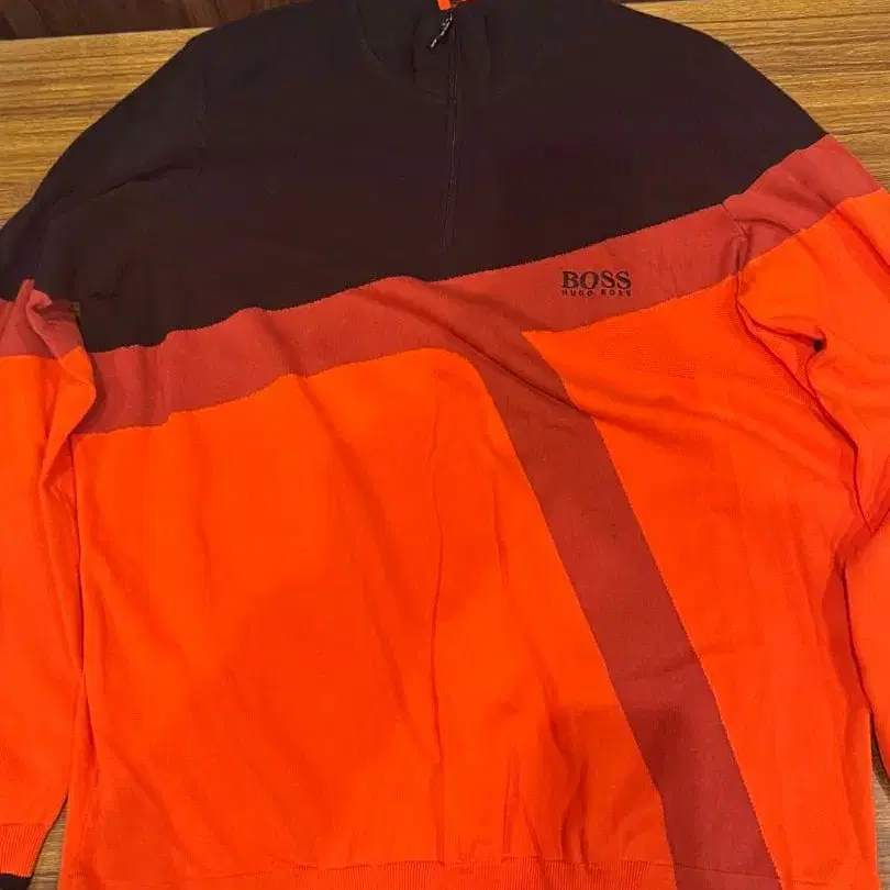 집업 디자인의 컬러 블록 니트, 오렌지와 블랙의 배색이 특징. - 브랜드: BOSS - 색상: 오렌지/블랙 - 디자인: 집업, 컬러 블록 - 소재: 니트 방문해 주셔서 감사합니다. 사이즈 - XL(LL) 사이즈 - 2XL(3L)