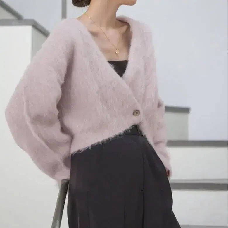 SLOANE 모헤어 샤기 V넥 니트 가디건