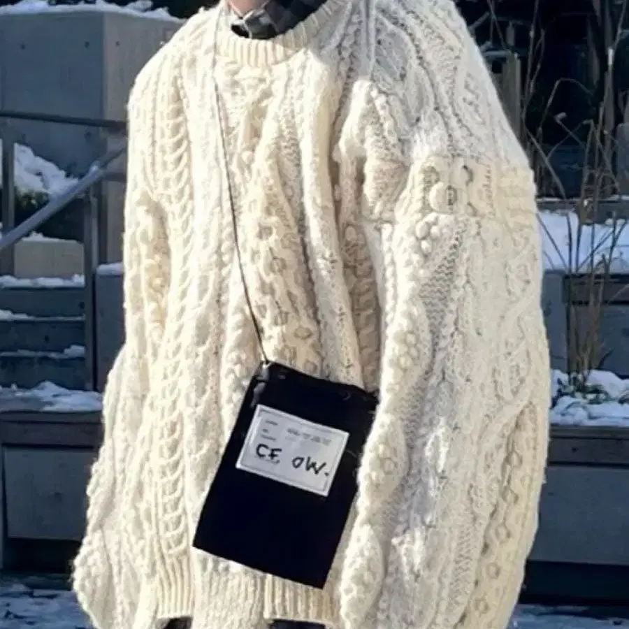 케이블 니트 스웨터 크림 x 그레이