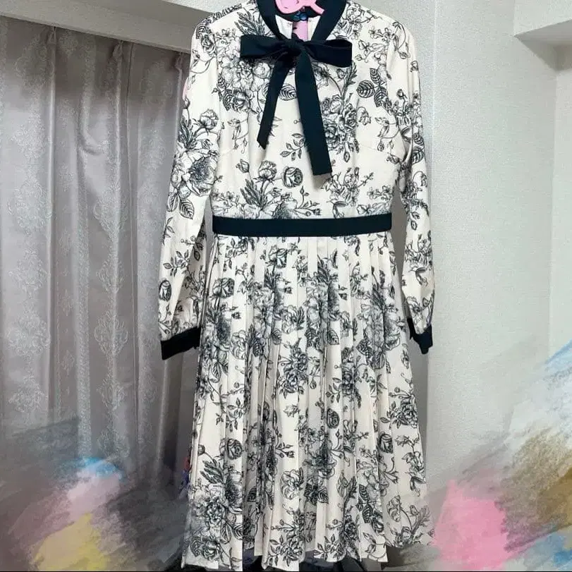 택 포함 새상품 ANAYI 아트 플라워 프린트 턱 가을/겨울 원피스