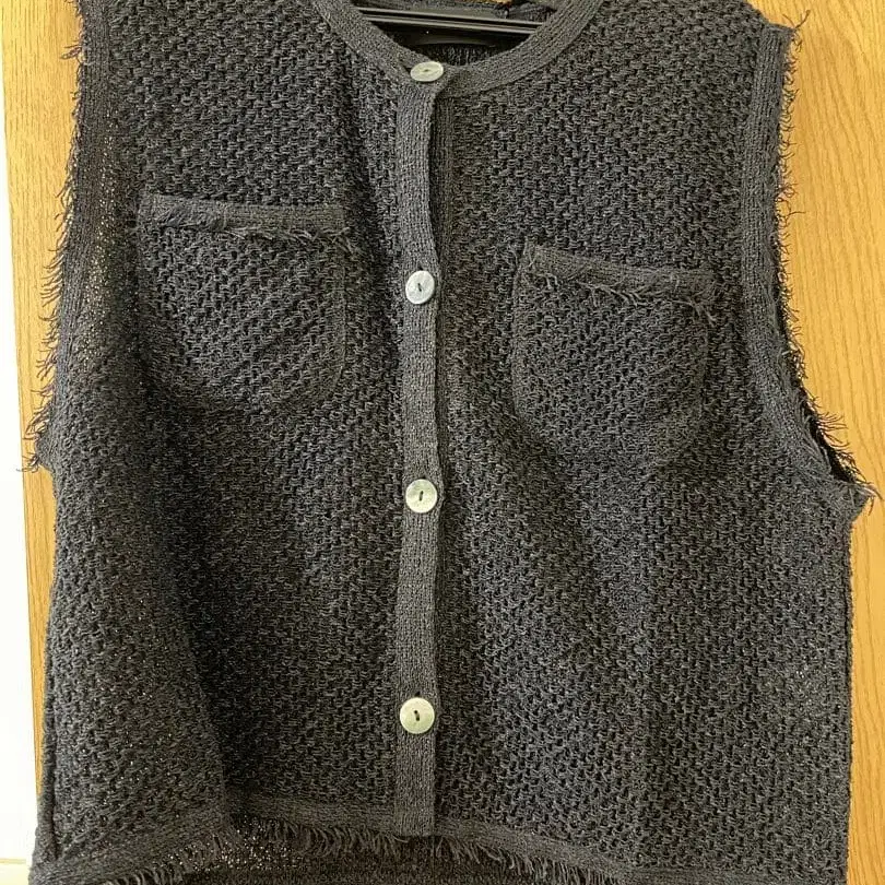 [새상품] 골지 짜임 믹스얀 브이넥 베스트 차콜