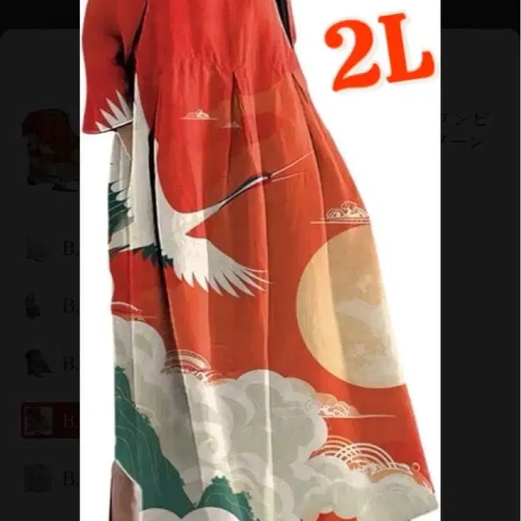 자동 번역되었어요. 원문보기주홍색을 바탕으로, 웅장하게 춤추는 학과 보름달, 흘러가는 구름이 그려진 존재감 있는 재패니즈 모던 디자인의 롱 원피스입니다.