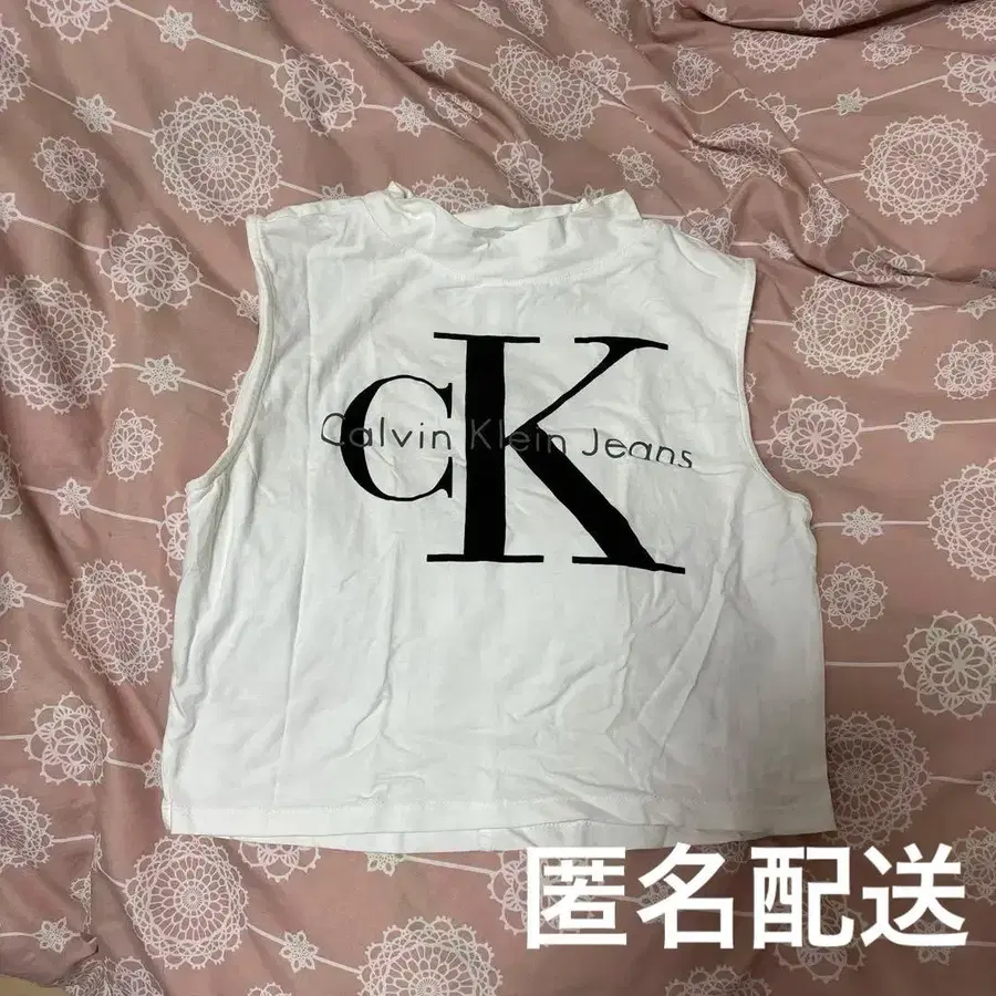 Calvin Klein Jeans의 로고가 특징인 화이트 탱크탑, 사이즈 L입니다.