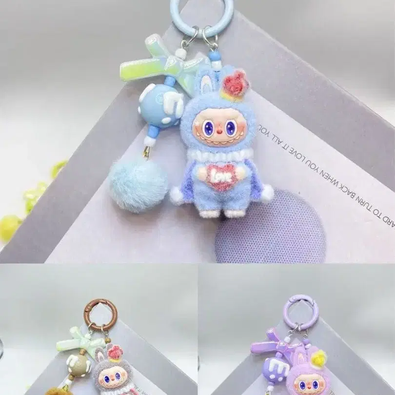 • Labubu 키링 세트 컬러풀 (3개 세트)