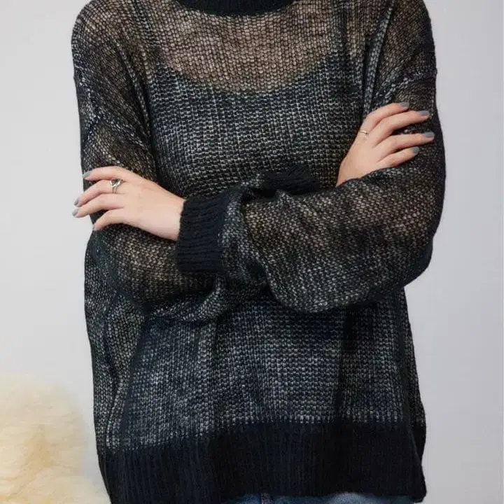 비침 오버 사이즈 니트 리버서블 시어 니트