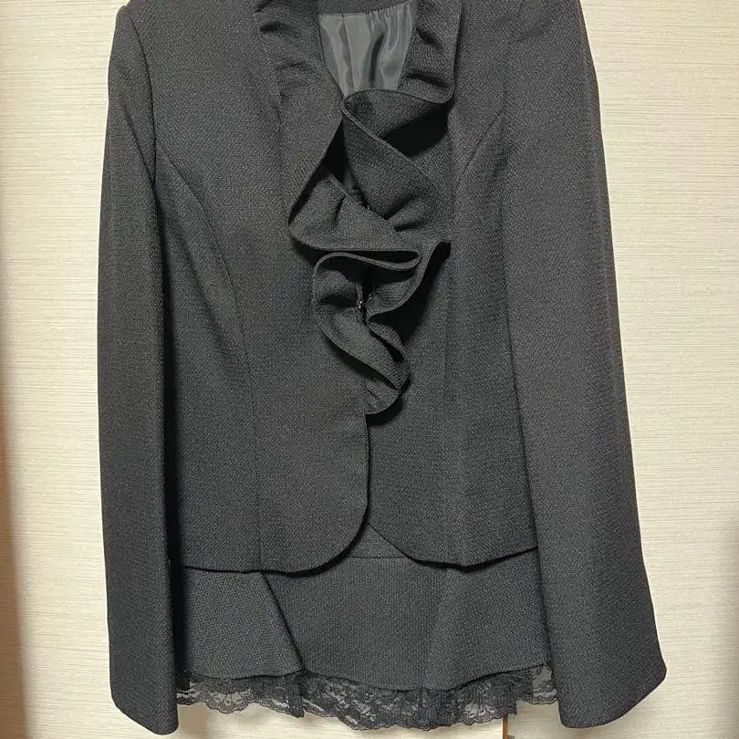 프릴과 레이스가 특징인 엘레강트한 블랙 자켓.