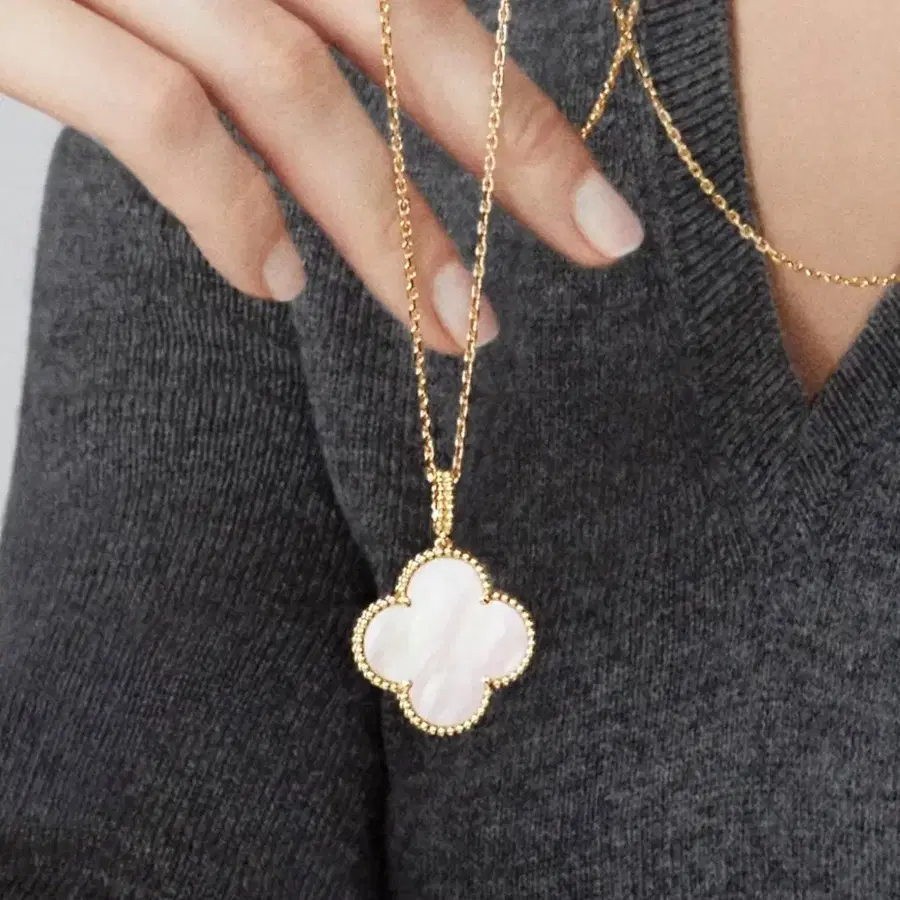 하이그레이드 화이트쉘 x 골드 클로버 목걸이 (Large)
