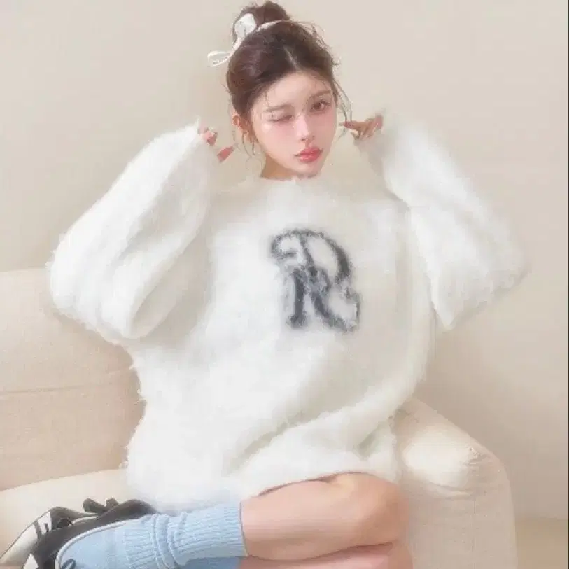 andmary 플러피 루즈 니트 아이보리