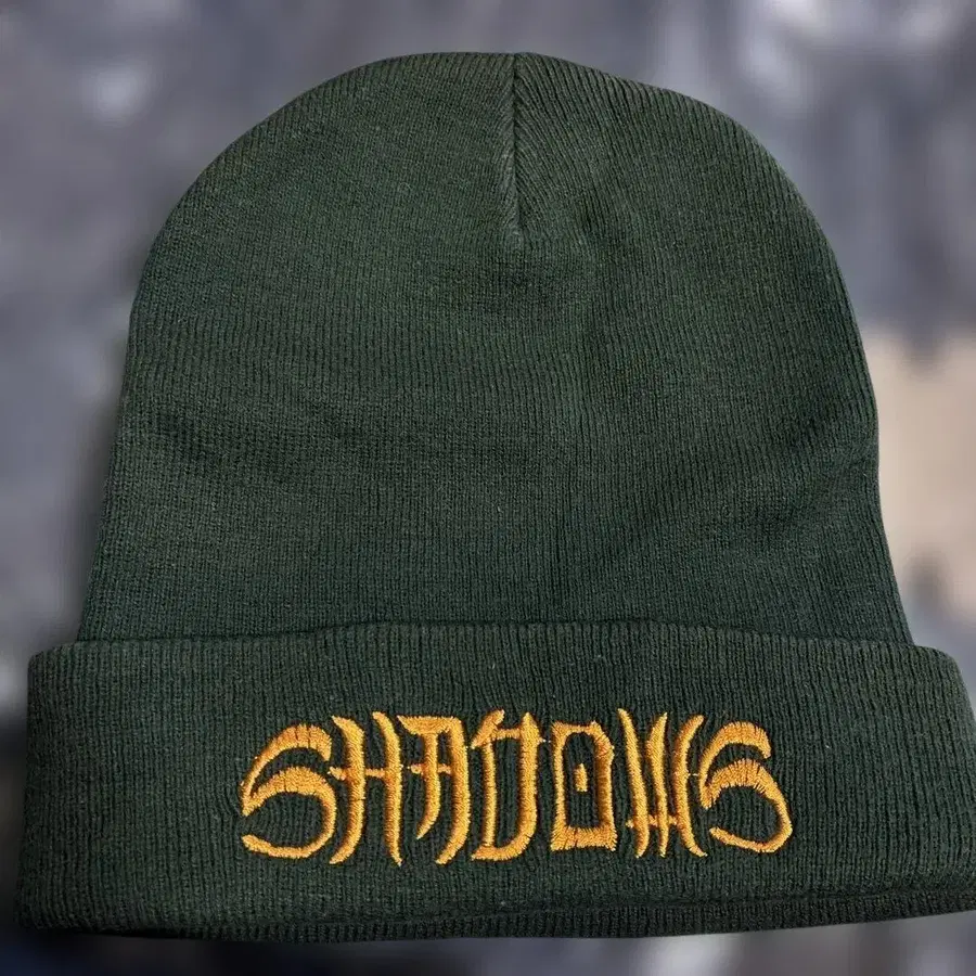 다크 그린 색상의 비니 모자에 SHADOWS 자수가 새겨져 있습니다. - 색상: 다크 그린 - 디자인: SHADOWS 자수 - 스타일: 비니 모자 방문해 주셔서 감사합니다.