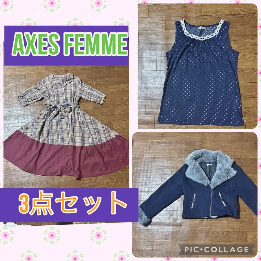 자동 번역되었어요. 원문보기AxesFemme 체크 무늬 드레스, 도트 무늬 탱크탑, 퍼가 달린 자켓 3종 세트.