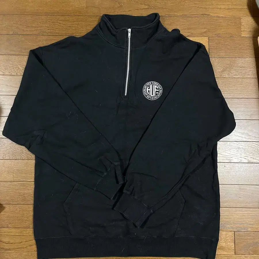 HUF 블랙 헤비 웨이트 하프 지퍼 XXL
