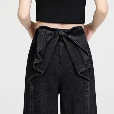 리본이 달린 블랙 와이드 팬츠, XS 사이즈의 스타일리시한 디자인. - 색상: 블랙 - 사이즈: XS - 디자인: 리본 포함 - 스타일: 와이드 팬츠 방문해 주셔서 감사합니다. 데님 색상 - 블랙 얼룩, 찢김, 냄새 등 - 없음