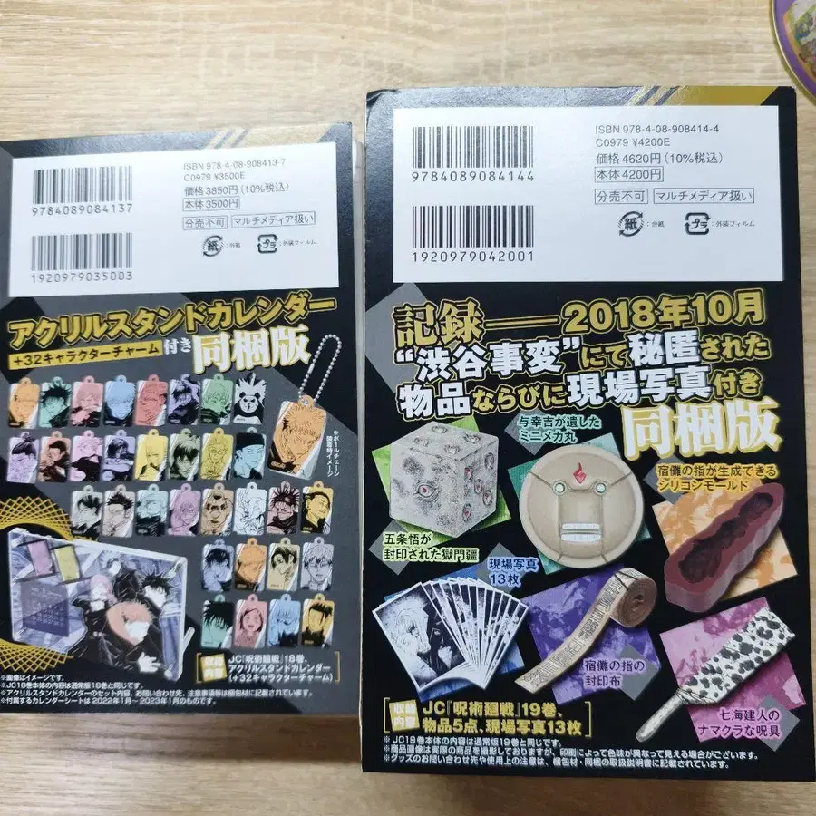 주술회전 18권 특장판 특전 아크릴 스탠드 달력 19권 특장판 특전 고죠 사토루, 메카마루, 스쿠나의 손가락 실리콘 몰드, 나나미 켄토의 저주 도구, 봉인포, 현장 사진 단행본은 부속되지 않습니다. 특전만 해당됩니다. 둘 다 미개봉품입니다. 댓글 없이 즉시 구매 가능합니다. 잘 부탁드립니다.