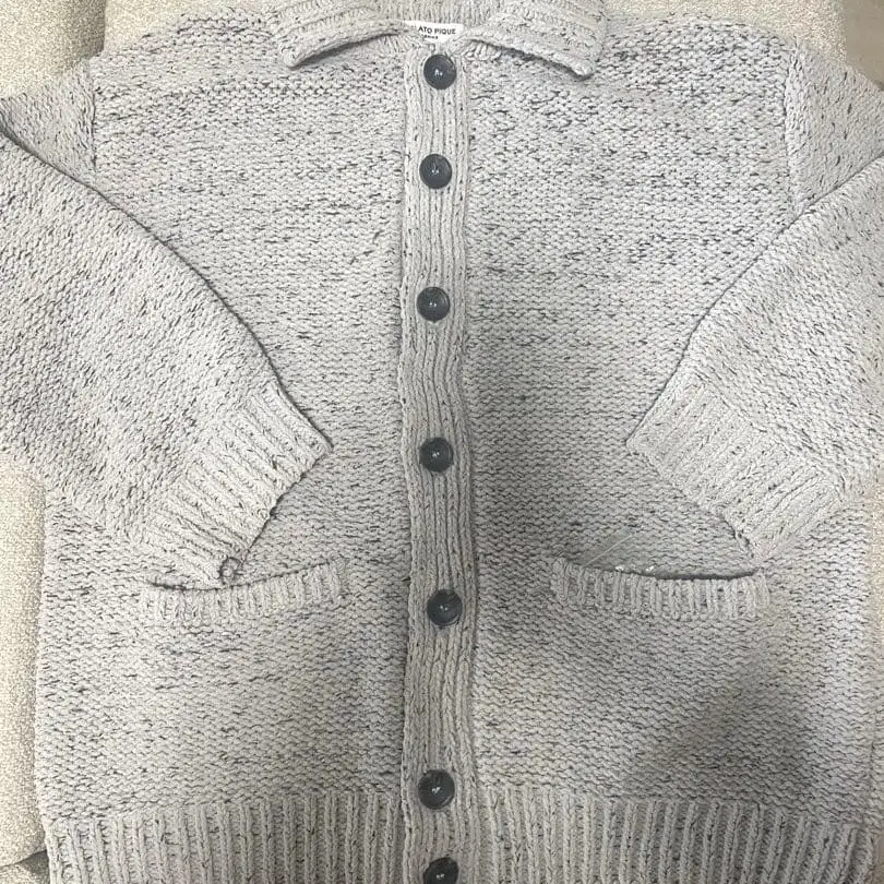 부드러운 그레이 색상의 가디건, 포켓 부착, 버튼 포함. - 브랜드: GELATO PIQUE - 색상: 그레이 - 스타일: 가디건 - 포켓: 있음 - 버튼: 부속 버튼 있음 시착만 한 상품입니다. 여아도 입을 수 있지만, 슬리퍼는 남성용입니다. 방문해 주셔서 감사합니다.