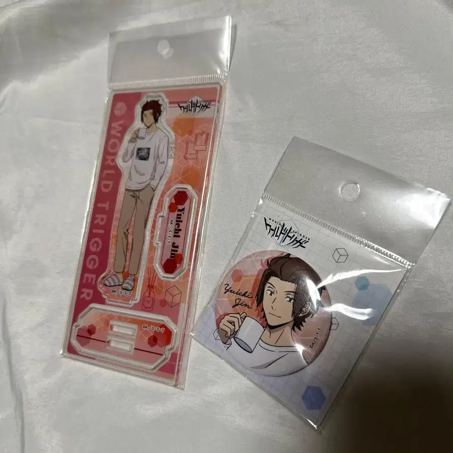 미사용 새상품 단종 데드스탁 2021년 제조 아크릴 스탠드 캔뱃지 2개 세트 월드 트리거 옥백지부