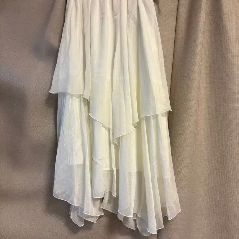 가벼운 쉬폰 소재의 2층 플레어 스커트입니다. - 색상: 화이트 - 스타일: 플레어 스커트 - 소재: 쉬폰 - 층수: 2층 - 허리 타입: 허리밴딩 방문해 주셔서 감사합니다.