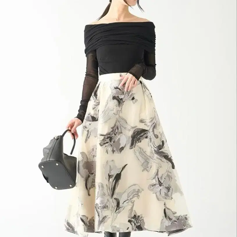 • 미스트라다 자카드 직조풍 꽃무늬 플레어 롱 스커트