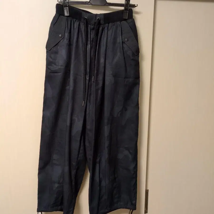 블랙 카모플라쥬 디자인의 캐주얼 팬츠, 드로우 스트링으로 쾌적한 핏감. - 색상: 블랙 카모플라쥬 - 스타일: 캐주얼 팬츠 - 허리: 드로우 스트링 포함 - 포켓: 사이드 포켓 있음 방문해 주셔서 감사합니다.
