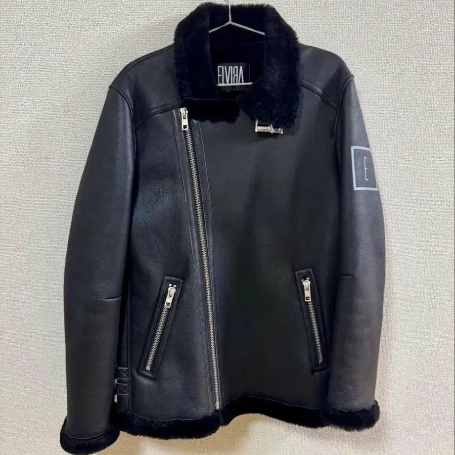 ELVIRA 엘비라 백 로고 무스탕 더블 라이더 자켓 XL