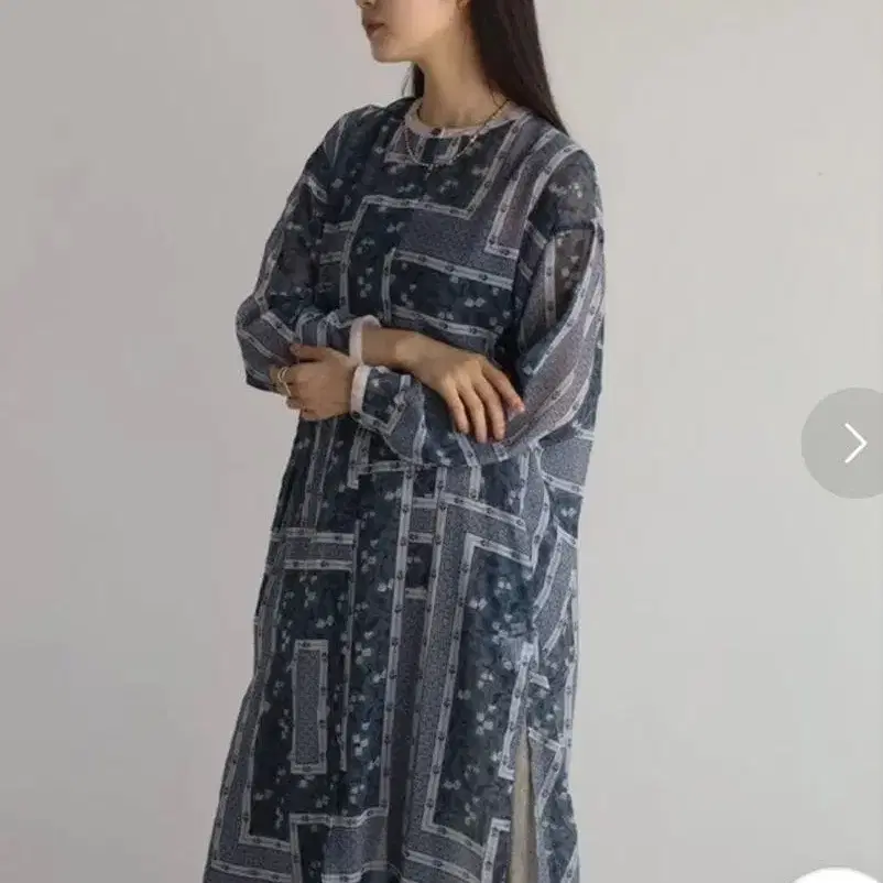 매끄러운 촉감과 아름다운 드레이핑이 돋보이는 시어 소재를 사용했습니다.