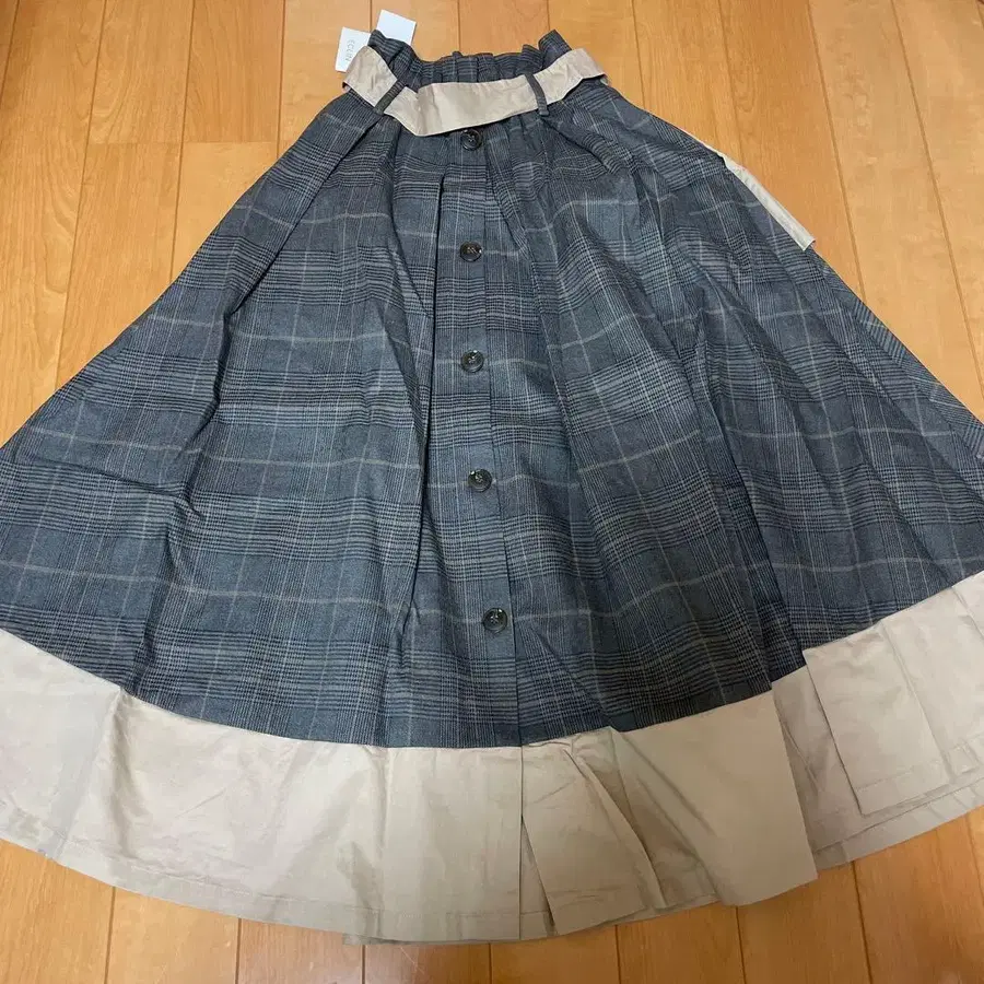 LOVELESS 체크 콤비 미디 스커트 롱 스커트