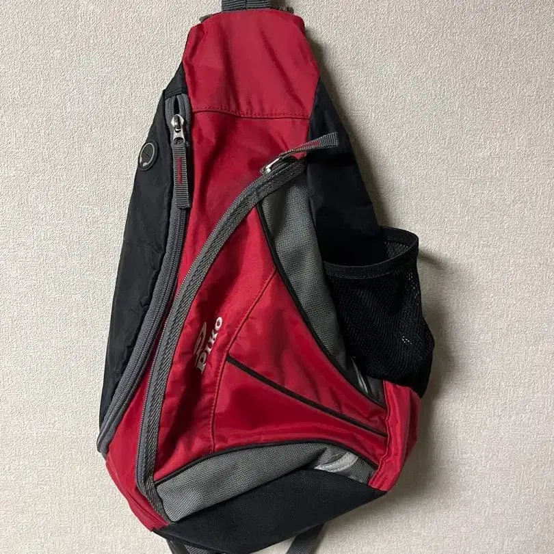 메쉬 포켓이 달린 사선 숄더백, 레드와 블랙의 콤비네이션. - 브랜드: Piko - 색상: 레드/블랙 - 스타일: 숄더백 - 특징: 메쉬 포켓 부착 - 디자인: 사선 타입 방문해 주셔서 감사합니다.