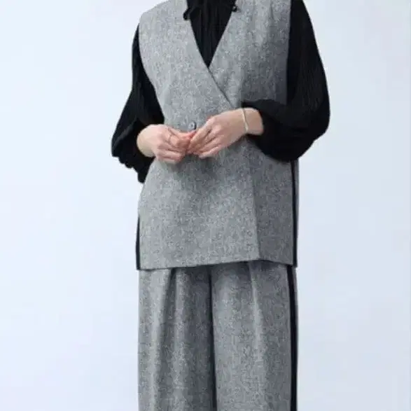 바이컬러로 처리한 사이드 라인이 모던한 느낌을 주는 와이드 팬츠. 프론트 양쪽에 턱을 넣어 세로 드레이프 라인을 만들고, 와이드 실루엣이면서도 깔끔한 인상을 줍니다. 셋업으로 착용하여 세레모니 장면 대응은 물론, 온오프에서 다양한 스타일링을 즐길 수 있습니다.