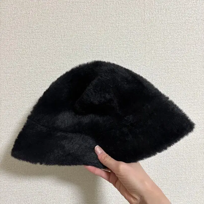 • 피쉬 본 칩스 버킷햇 인조 모피 겨울 블랙