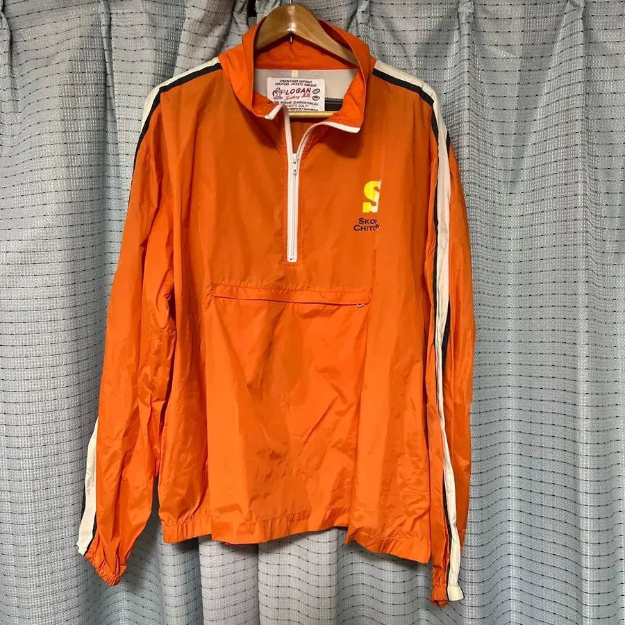 오렌지색 하프 지퍼 나일론 자켓, 사이드 스트라이프 포함. - 색상: 오렌지 - 디자인: 하프 지퍼 - 특징: 사이드 스트라이프 - 브랜드: LOGAN Knitting Mills 방문해 주셔서 감사합니다.