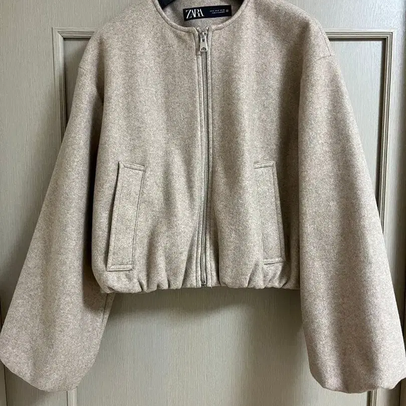 이 ZARA 자켓은 집업 스타일로, 봄버 자켓의 실루엣이 특징입니다. 캐주얼한 코디네이트에 딱 맞습니다.