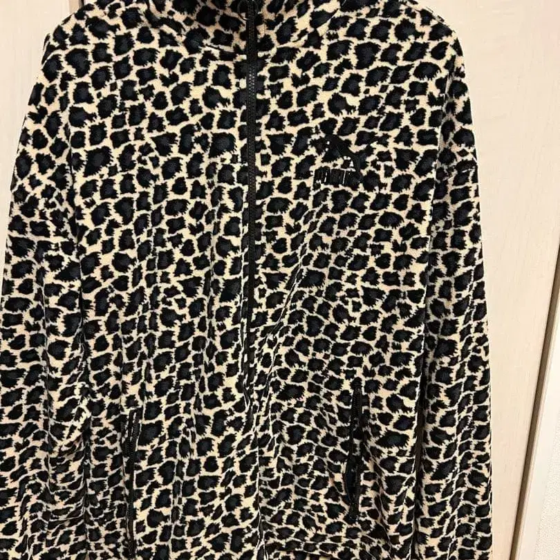 PUMA의 레오파드 무늬 디자인 플리스 자켓, 보온성이 뛰어난 제품입니다.