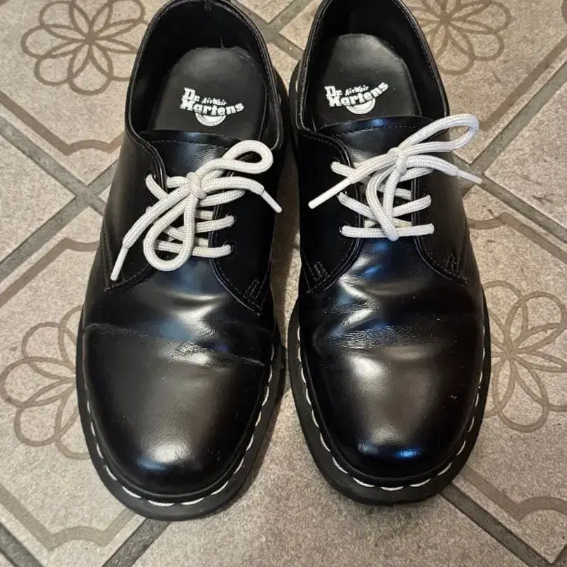 가죽 소재의 블랙 레이스업 슈즈, 통굽으로 스타일리시한 디자인. - 브랜드: Dr. Martens - 색상: 블랙 - 스타일: 레이스업 슈즈 - 소재: 가죽 - 밑창: 통굽 - 신발끈: 화이트 - 디자인: 스티치 디자인 방문해 주셔서 감사합니다.