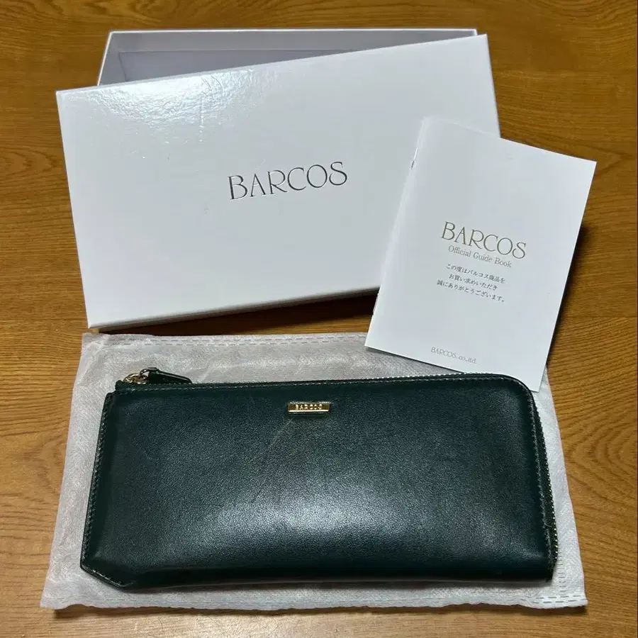 [ BARCOS ] L자 지퍼 장지갑 짙은 녹색 박스 포함