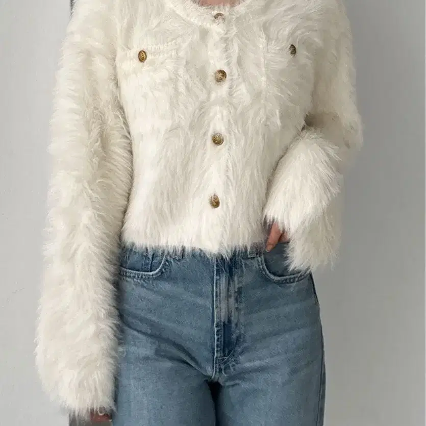 골드 버튼 샤기 니트 가디건