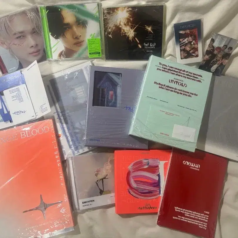 ENHYPEN 앨범 묶음 판매입니다. 사진에 보이는 트레이딩 카드도 포함되어 있습니다. 방문해 주셔서 감사합니다.
