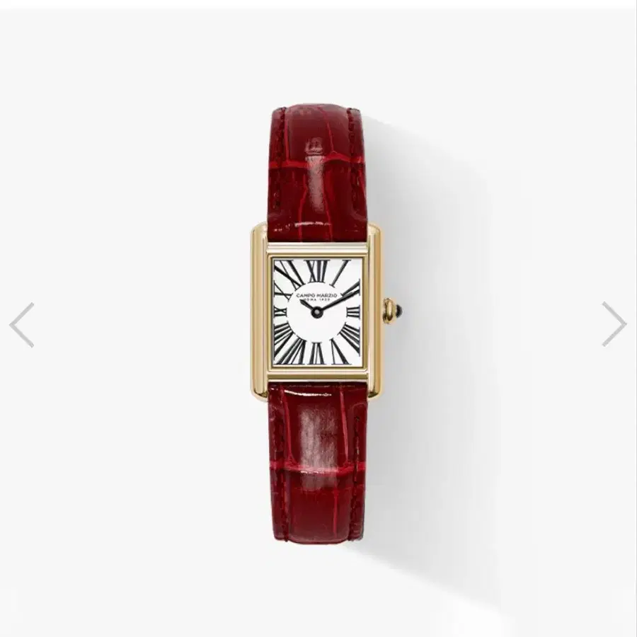 레드 가죽과 화이트 다이얼의 클래식한 디자인의 시계.
