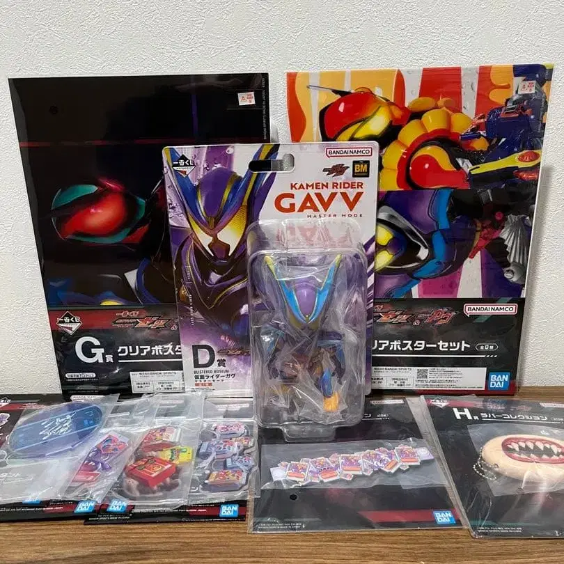 제일복권 가면라이더 젝츠&가브 세트입니다. 내용은 아래와 같습니다. D상 가면라이더 가브 마스터 모드 1개 F상 아크릴 스탠드 4개 (내용물 확인을 위해 외부 가방은 개봉했습니다.) G상 클리어 포스터 세트 2개 H상 러버 컬렉션 2개 모두 미개봉 새상품입니다. 각각 이미지로 확인 후, 검토 부탁드립니다.