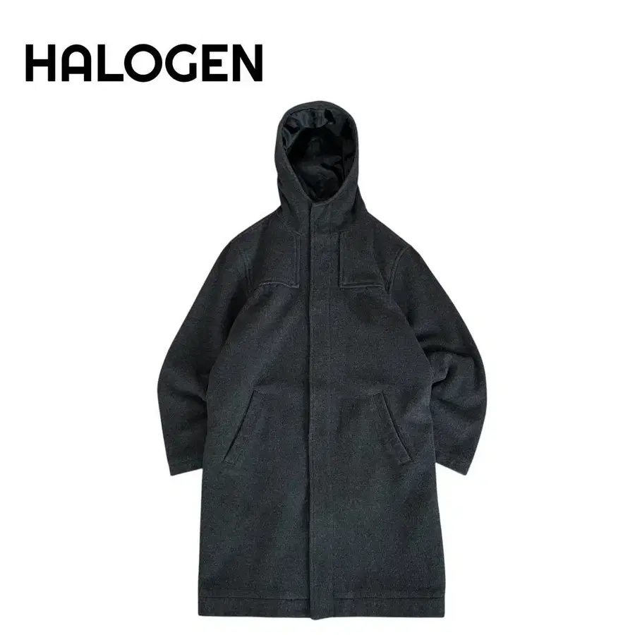 [ 새상품급 ] HALOGEN 90s 울 후드 부착 롱 코트 그레이