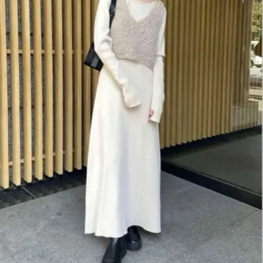 • [ 새상품 ] 셀포드 니트 베스트 포함 화이트 원피스
