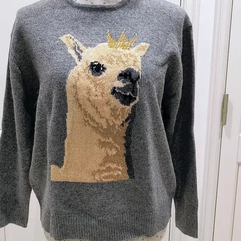 알파카 100% 보더 긴팔 니트 올 알파카 퓨어 알파카 브라운