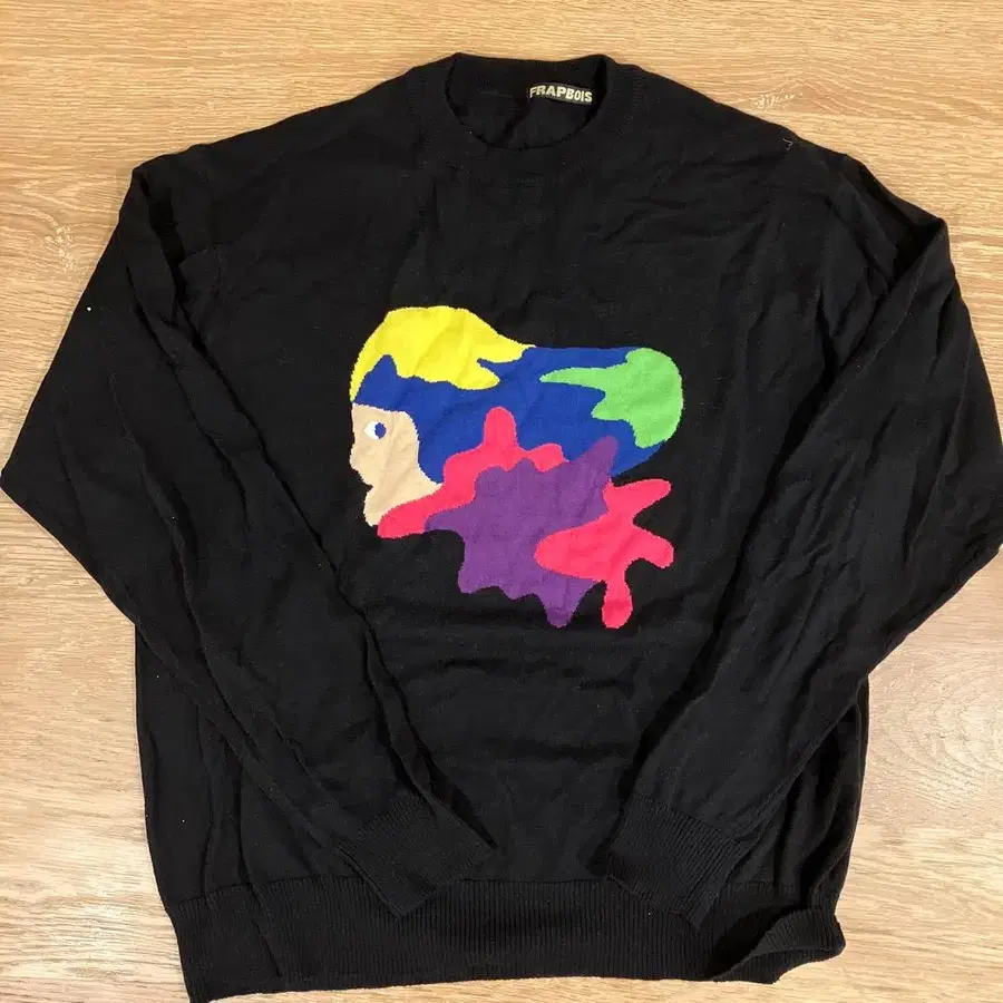 - 브랜드: FRAPBOIS (플라보아) - 아이템: 니트 스웨터 - 색상: 블랙 - 사이즈: 2 - 실측치수(cm): 가슴 너비:48cm, 어깨 너비:46cm, 소매 길이:58cm, 기장:63cm - 소재: 면100% 개봉 후 미사용 컬러풀한 자수가 특징인 블랙 긴팔 스웨터 방문해 주셔서 감사합니다.