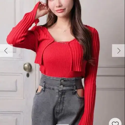 유나이티드 애로우즈 소매 프릴 리브 니트 화이트